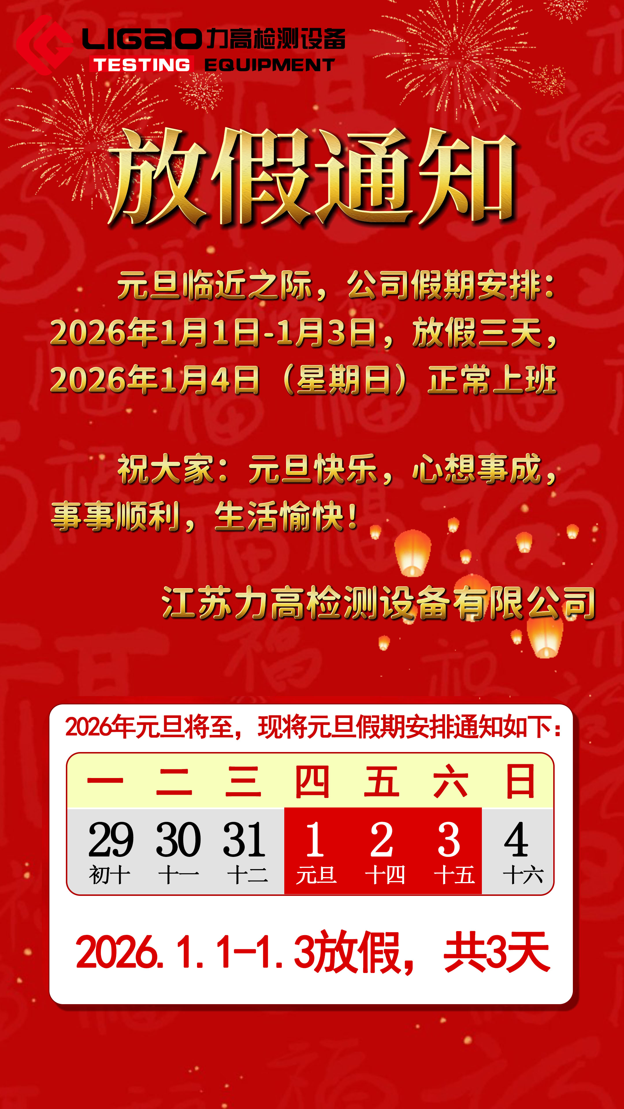 元旦佳节寓意着新的开始,公司感谢全体员工一年来的辛勤付出,也衷心感谢广大客户长期以来的信任与支持。预祝大家度过一个愉快、祥和的假期,我们期待在新的一年里继续携手共创佳绩。